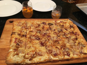 Karin and I had our favorite vacation in Alsace, France. Each year we celebrate with a homemade Alsace pizza along with some Alsatian wine.